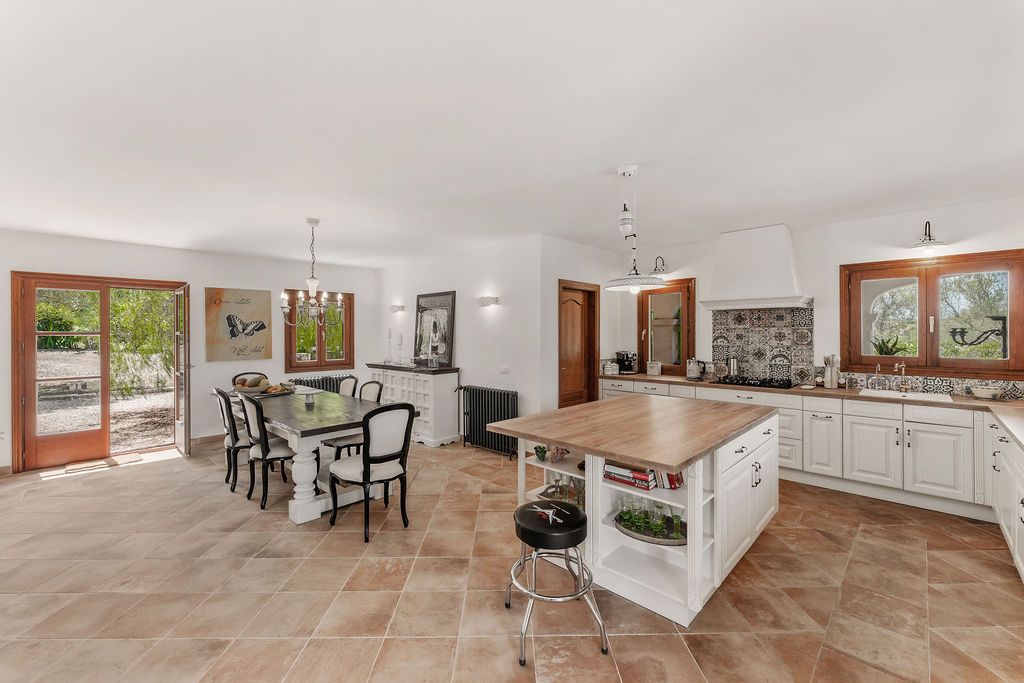 Encantadora y romántica finca cerca de Muro con vistas al mar hasta Alcudia. La finca, renovada en 2021, está decorada al estilo de una casa de campo toscana. La zona de entrada, con sus altas ventanas, ofrece mucha luz. A la derecha se encuentra la bonita y amplia cocina-comedor con una acogedora zona de comedor. También en la planta baja hay una amplia sala de estar con chimenea. En la parte trasera hay un posible dormitorio o estudio con baño de invitados. En la parte superior, separada por la galería, hay dos dormitorios principales de casi 50 m² con baño y una pequeña zona de estar o de trabajo. Desde las amplias terrazas se disfruta de una amplia vista al mar y al horizonte. Superficie habitable 330 m2. 3 dormitorios. Terreno 12 000 m2.
