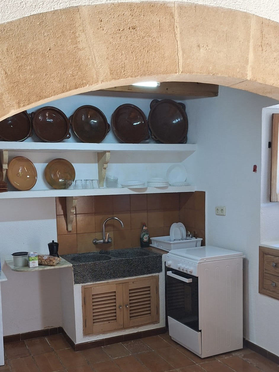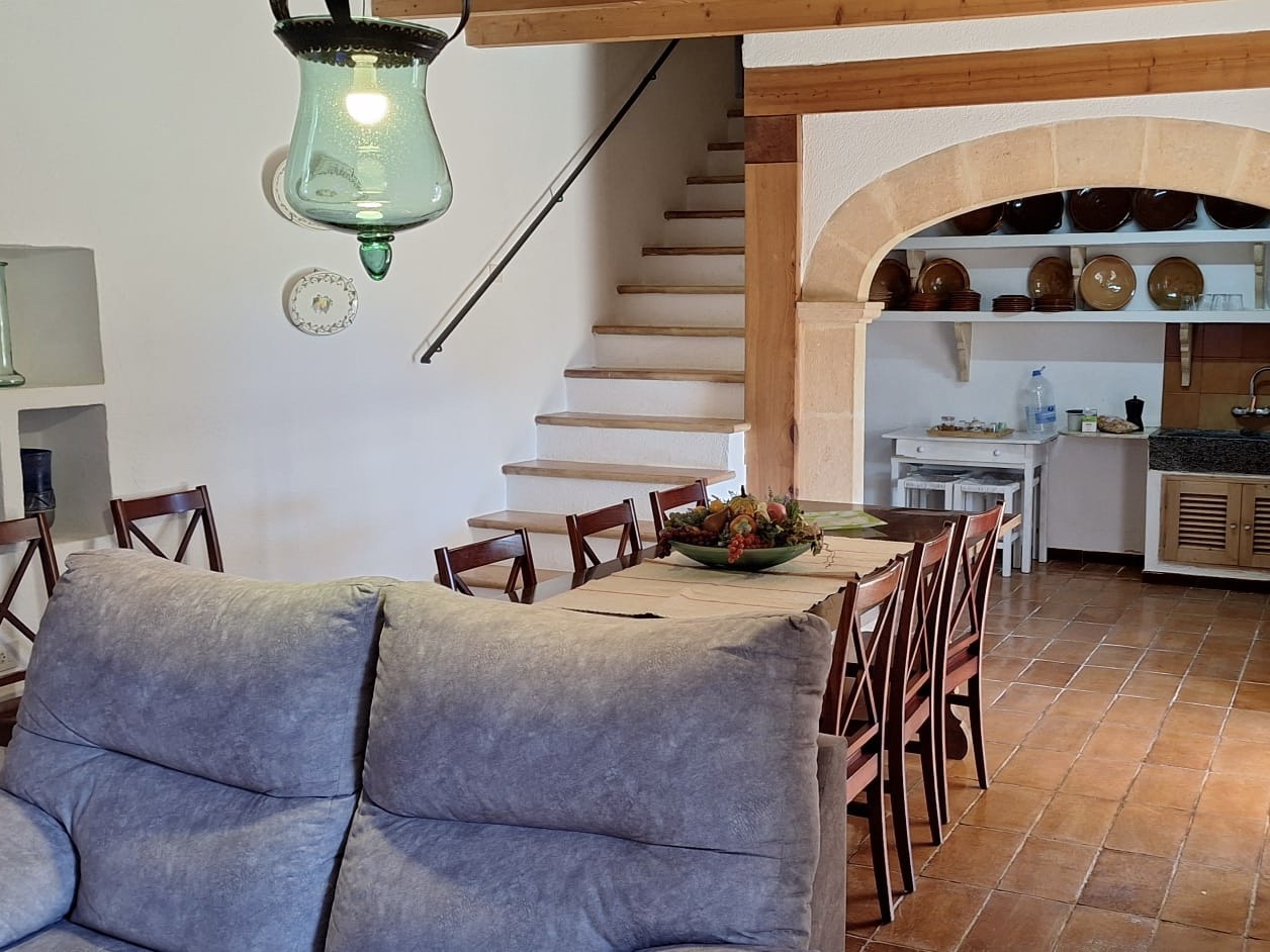 Schönes Grundstück mit vielen Orangenbäumen, kleines Haus mit rustikaler Küche, offener Wohn-Essbereich. Im oberen Stock hat es zwei kleine Schlafzimmer mit Blick in den Garten. Alles sehr gemütlich und sehr typisch für ein mallorquinisches Haus auf dem Land.